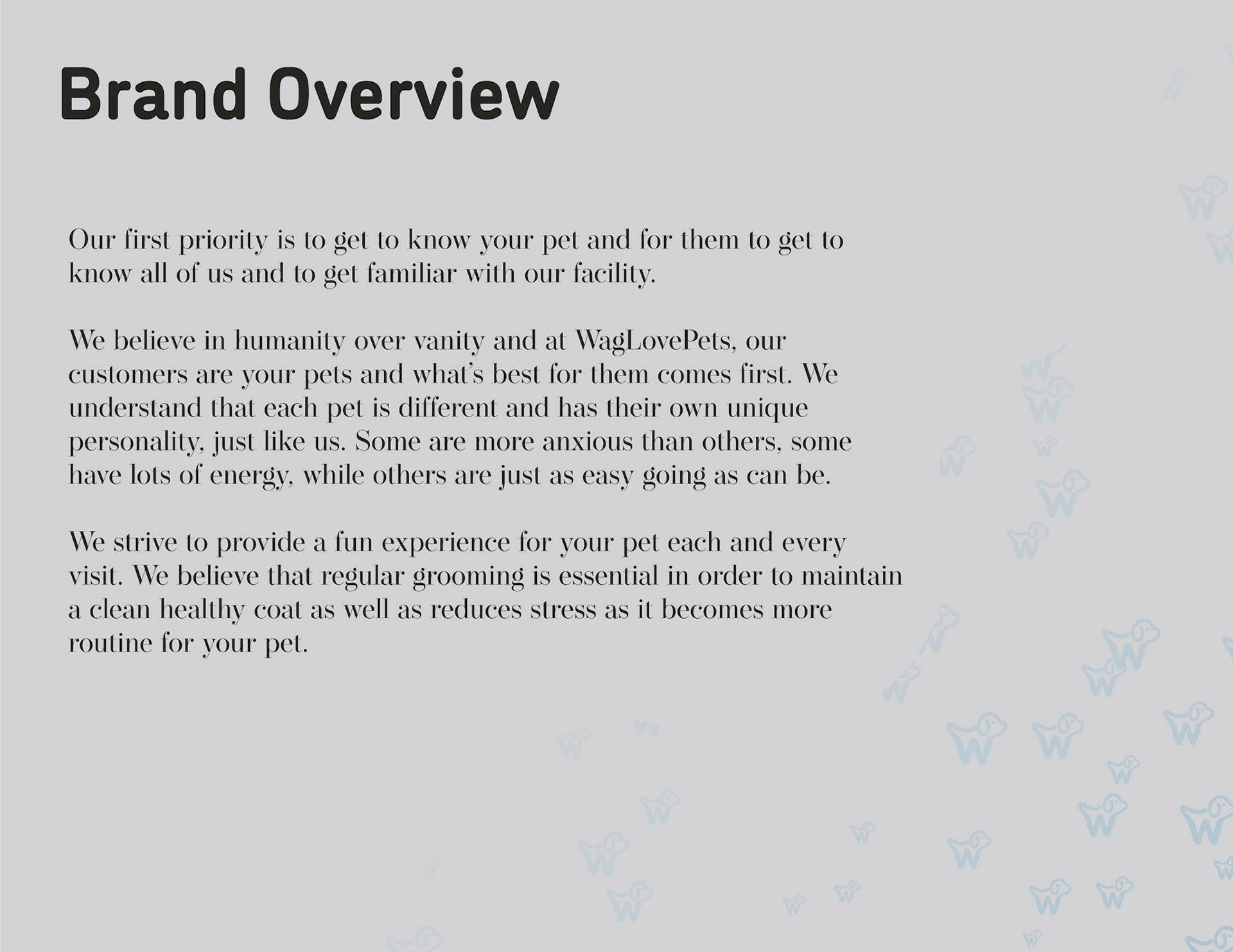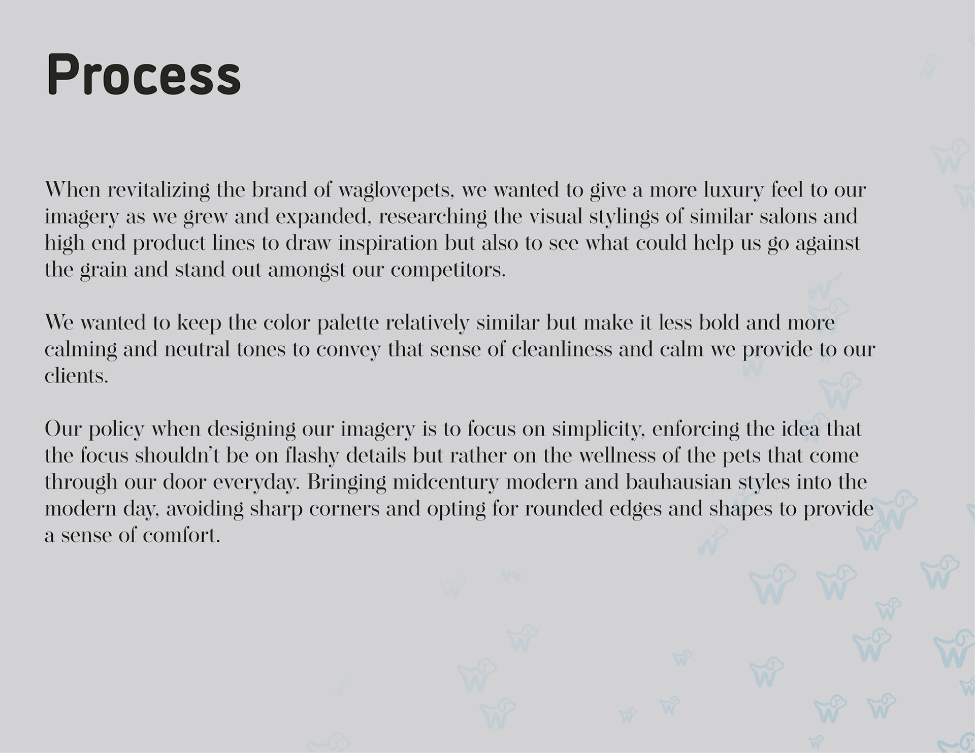 I was fortunate enough to be able to work with WagLovePets as they worked towards launching their second brick-and-mortar location and were looking for a clean, fresh, new look with a more luxurious and elegant style.